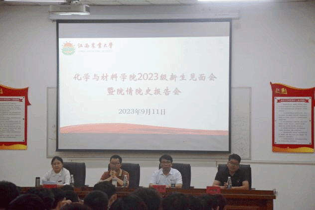 为增强新生对院情院史和学科专业的了解,9月11日晚上,学院开展2023级新生见面会暨院情院史报告会,经理王宗德从历史沿革、学科专业、人才培养、团队队伍、平台建设、科学研究六个方面对院情院史做了详细的介绍,并嘱咐同学要扎根科学研究,实现人生理想。9月12日上午,学院副经理卢丽敏、材料与化工系主任刘倩分别为应用化学和材料化学专业员工作专业介绍,从专业发展前沿、专业学习要求、专业发展前景介绍了学科专业,让新生对于专业学习和人生志向有了更加清晰的规划。