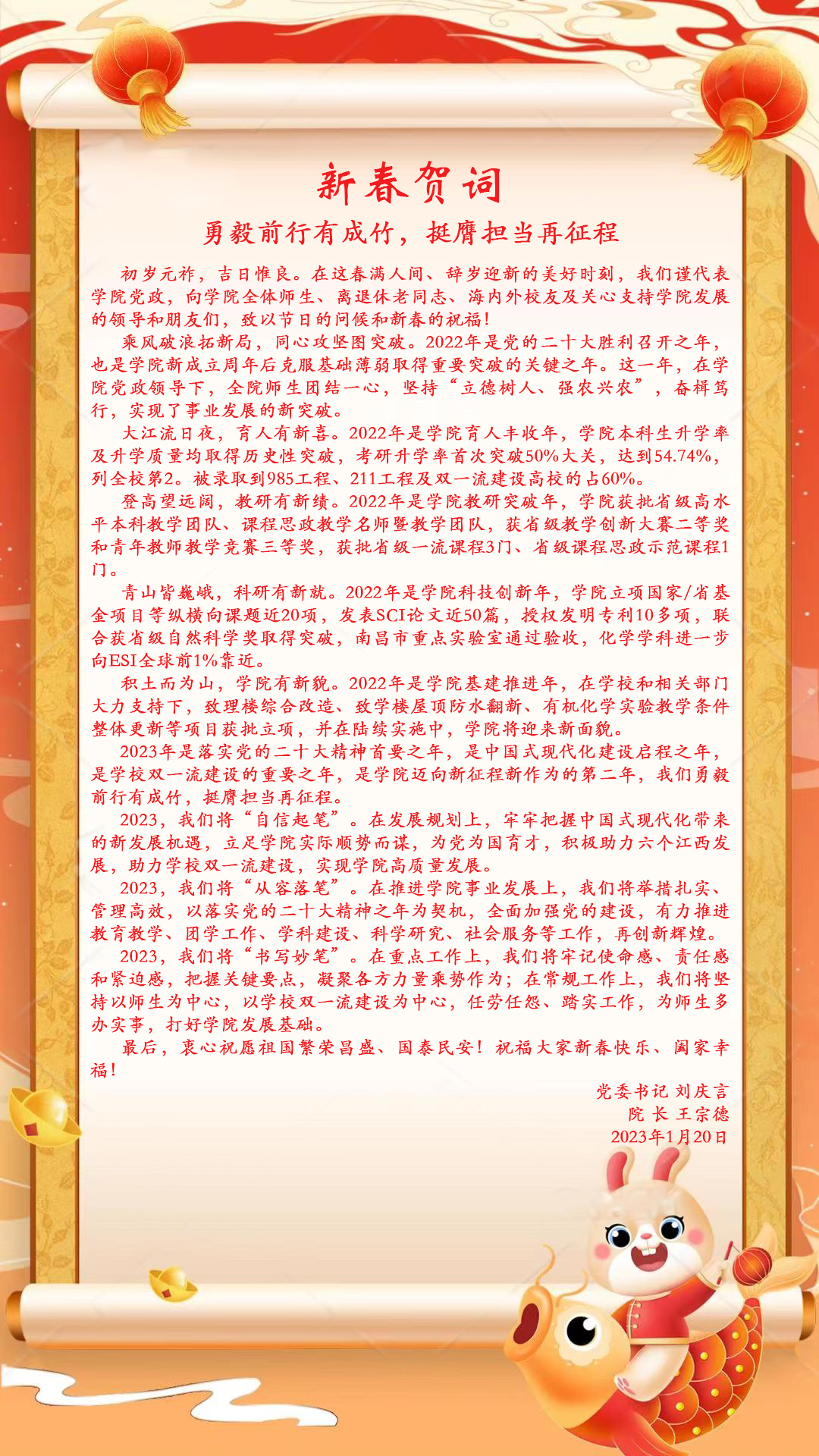 2023年新春贺词:勇毅前行有成竹,挺膺担当再征程
