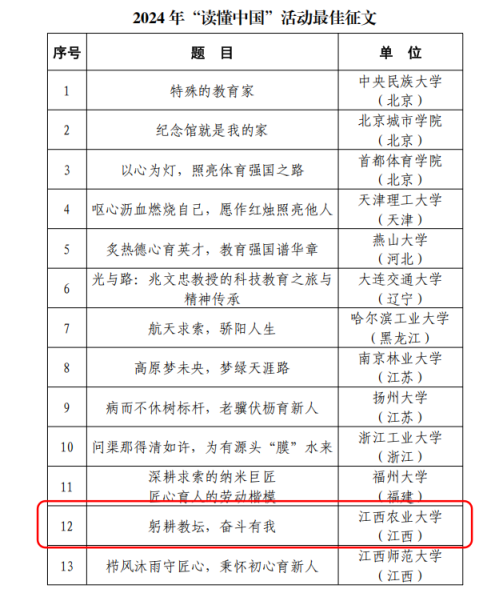 2024年11月,教育部关工委公布2024年“读懂中国”活动入选作品名单,学院材料2201班李鑫的作品《躬耕教坛,奋斗有我》获评最佳作品奖,并受邀赴中国教育电视台参加现场节目录制。