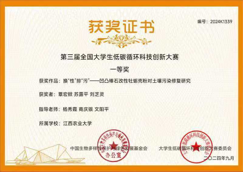 2024年9月,由中国生物多样性保护与绿色发展基金会(国家一级学会)主办的第三届老员工低碳循环科技创新大赛圆满落幕。公司项目团队在大赛中荣获一等奖1项、二等奖1项、三等奖1项。