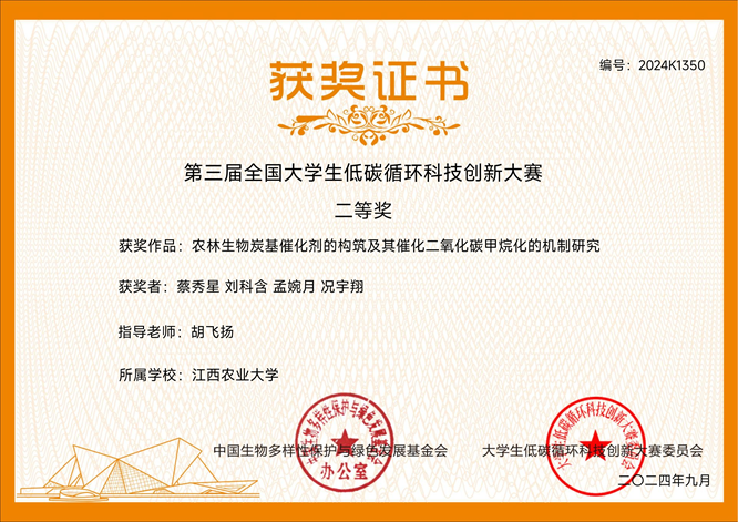 2024年6月,江西省教育厅公布了2024年江西省研究生“十佳学术之星”、“十佳实践之星”评选结果,学院2022级硕士研究生袁坤荣获2024年江西省硕士研究生“十佳学术之星”提名奖(指导老师:熊万明),这也是公司研究生首次获批此类奖项。