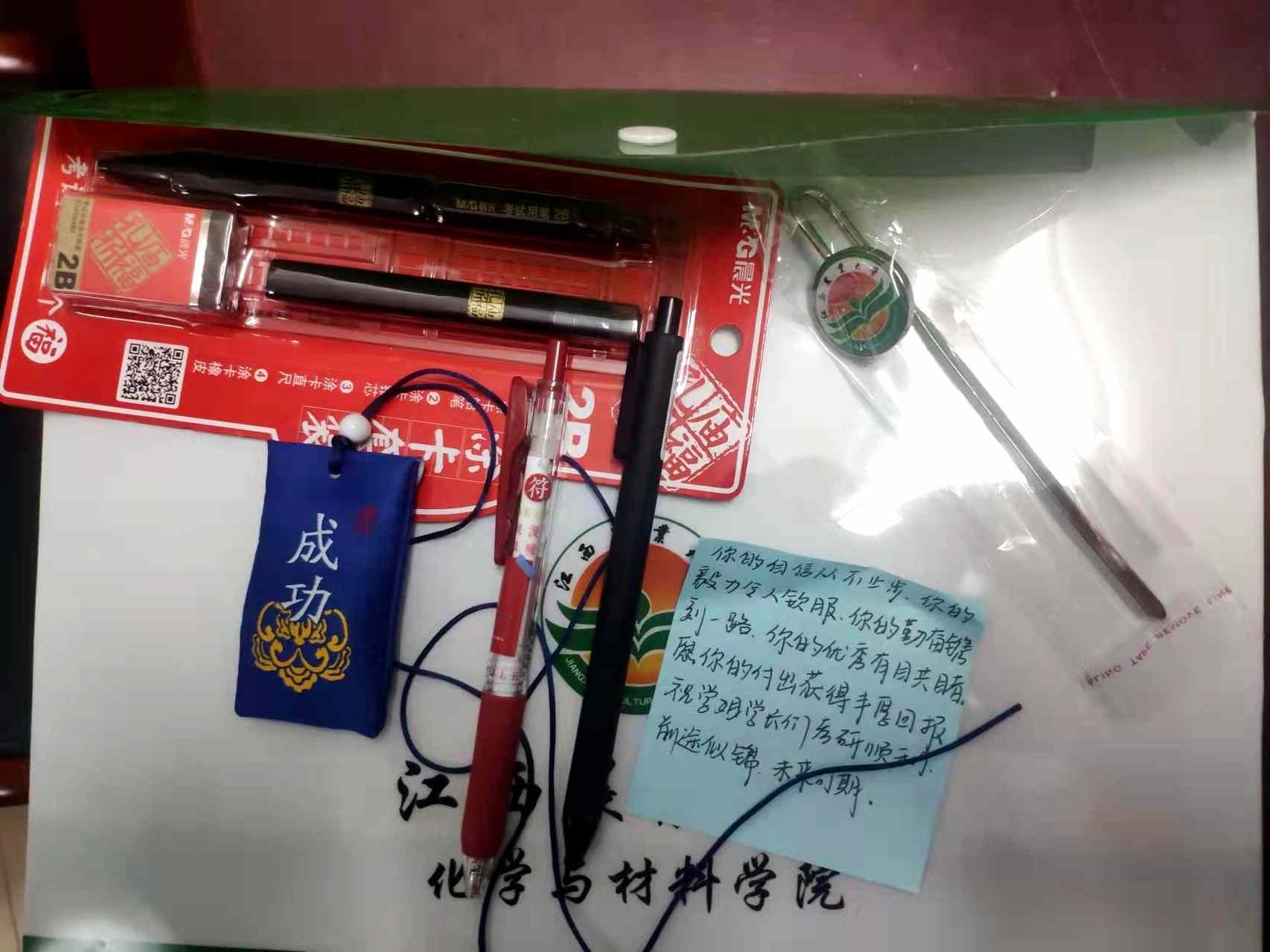 最后,学院全体领导及毕业班班主任为全体考研员工送上了精心准备的“考研大礼包”。考研学子纷纷表示,学院领导老师们的谆谆教诲和精心准备的礼物犹如锦囊妙计让自己在考研的“战役”中更加富有信心和底气,要更加努力拼搏,力争考出优异的成绩。