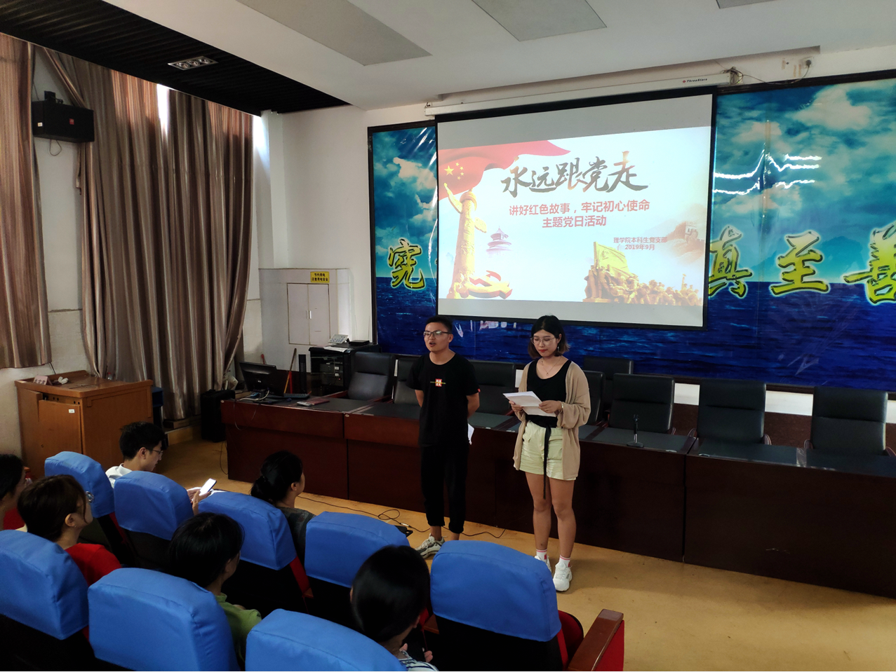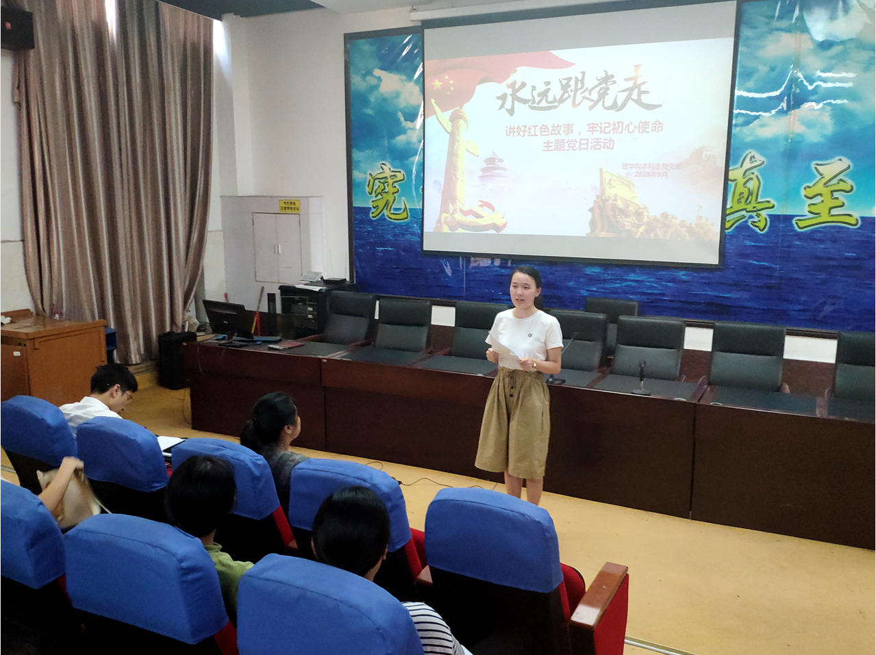 9月10日下午,理学院本科生党支部开展了 “讲好红色故事,牢记初心使命”主题党日活动。活动中,员工党员通过情景表演、朗诵、PPT演讲等多种形式再现了伟大的无产阶级革命家朱德,革命烈士刘胡兰、伍若兰等信念坚定、艰苦奋斗、不畏牺牲的红色经典事迹,并展开热烈讨论。