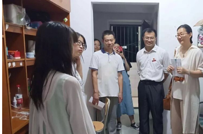 理学院2018级新生有184人,新生寝室集中分布于南区的9栋和25栋。“大家都作下自我介绍吧,来自哪些地方啊?”王经理进入寝室与新生进行交谈。他提醒新生要强化安全意识,勉励大家军训期间要严守纪律, 克服困难, 加强团结,共同进步。周书记则提醒新生:大家遇到困难时一定要及时与辅导员、院领导反映,学院一定会尽力帮助大家。他鼓励新生提高自理自立能力,积极参与集体活动,尽快适应大学校园生活。