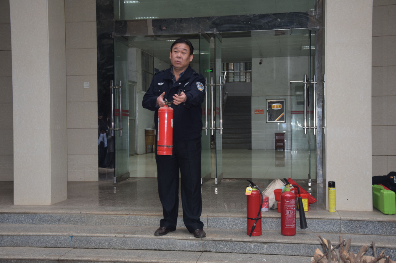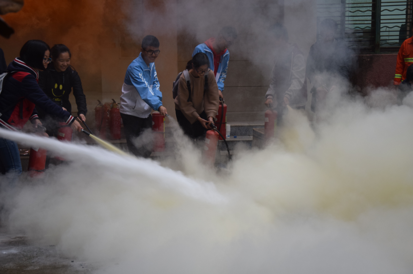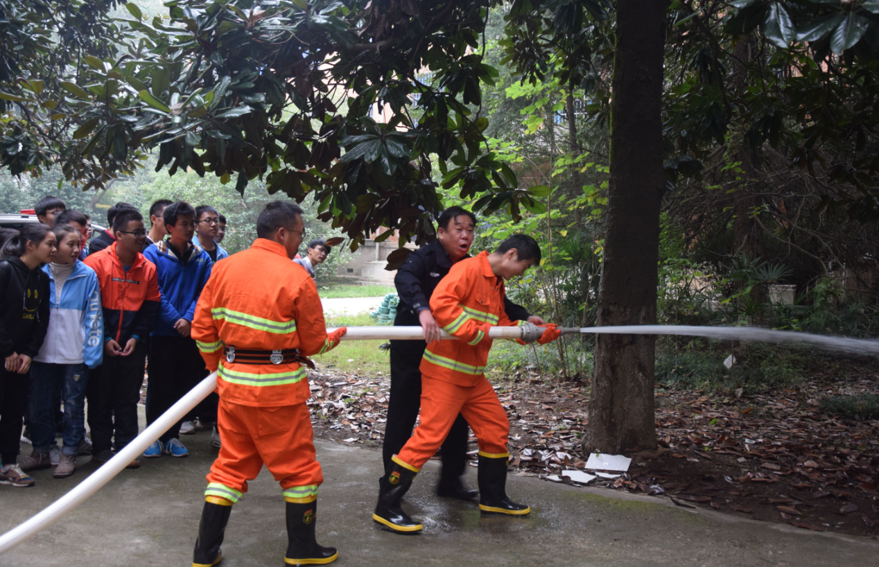 演练之前,保卫处消防科张红云、韦玮、徐杰、熊林雨等讲解灭火器的使用方法、火场逃生自救注意事项和方法、自救器材的使用等基本知识,现场示范了消防水带操作。学院师生在保卫处专业人员的指导下,体验了使用灭火器灭火操作。