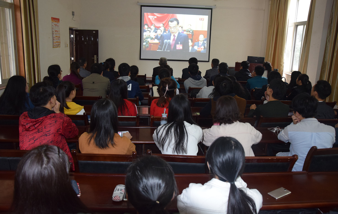 10月18日上午中国共产党第十九次全国代表大会在人民大会堂隆重召开。理学院师生党员40余人在研究生教室集中收看十九大开幕会。