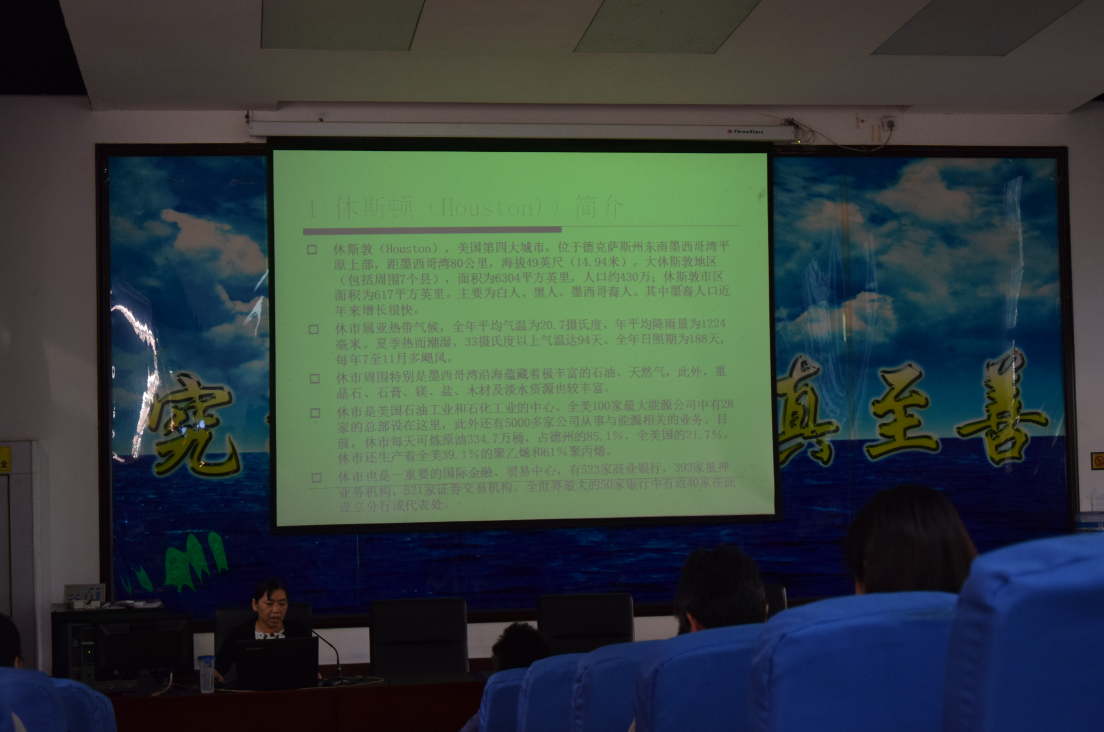 王义华经理主持报告会,参加报告会人员有学院全体教职工和学院部分本科生。报告会结束时王经理做了总结讲话,他希望全体教师积极争取赴国外学习培训的机会,拓展视野,提升能力,为推进学院事业发展作出更大贡献;同时勉励学院同学们努力学习,立志争取海外留学的机会。(理学院办公室)