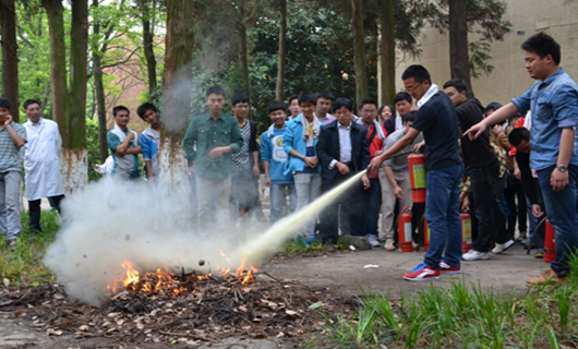 为进一步强化师生的消防安全意识,认真落实防止火灾事故发生的有关措施,切实提高全院师生的应急疏散能力,2014年4月15日,在校保卫处的大力支持下,公司在化学实验楼举行了一次模拟消防演练。保卫处副处长万江文及相关工作人员、学院领导和师生共有80余人参加了本次活动。