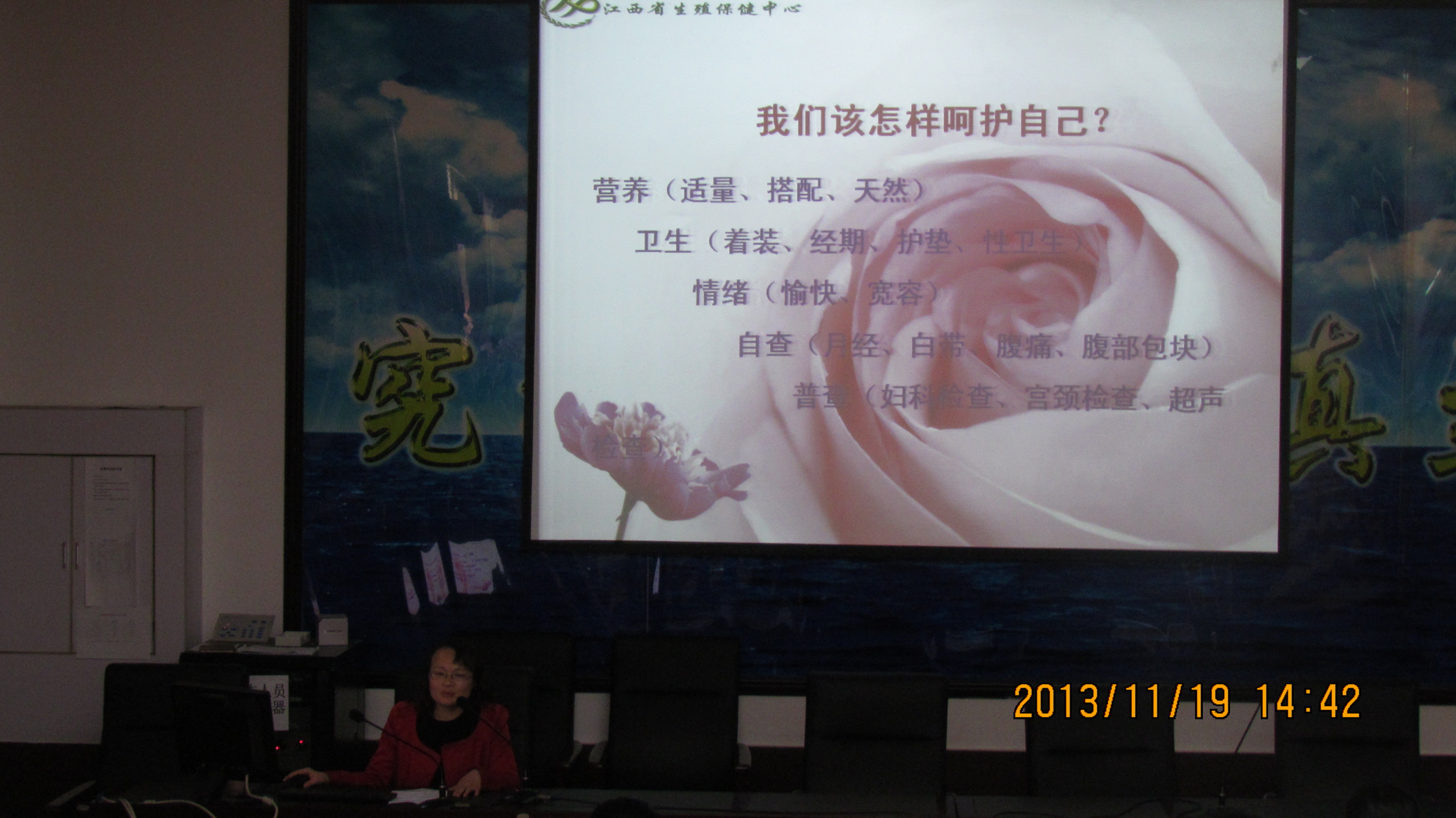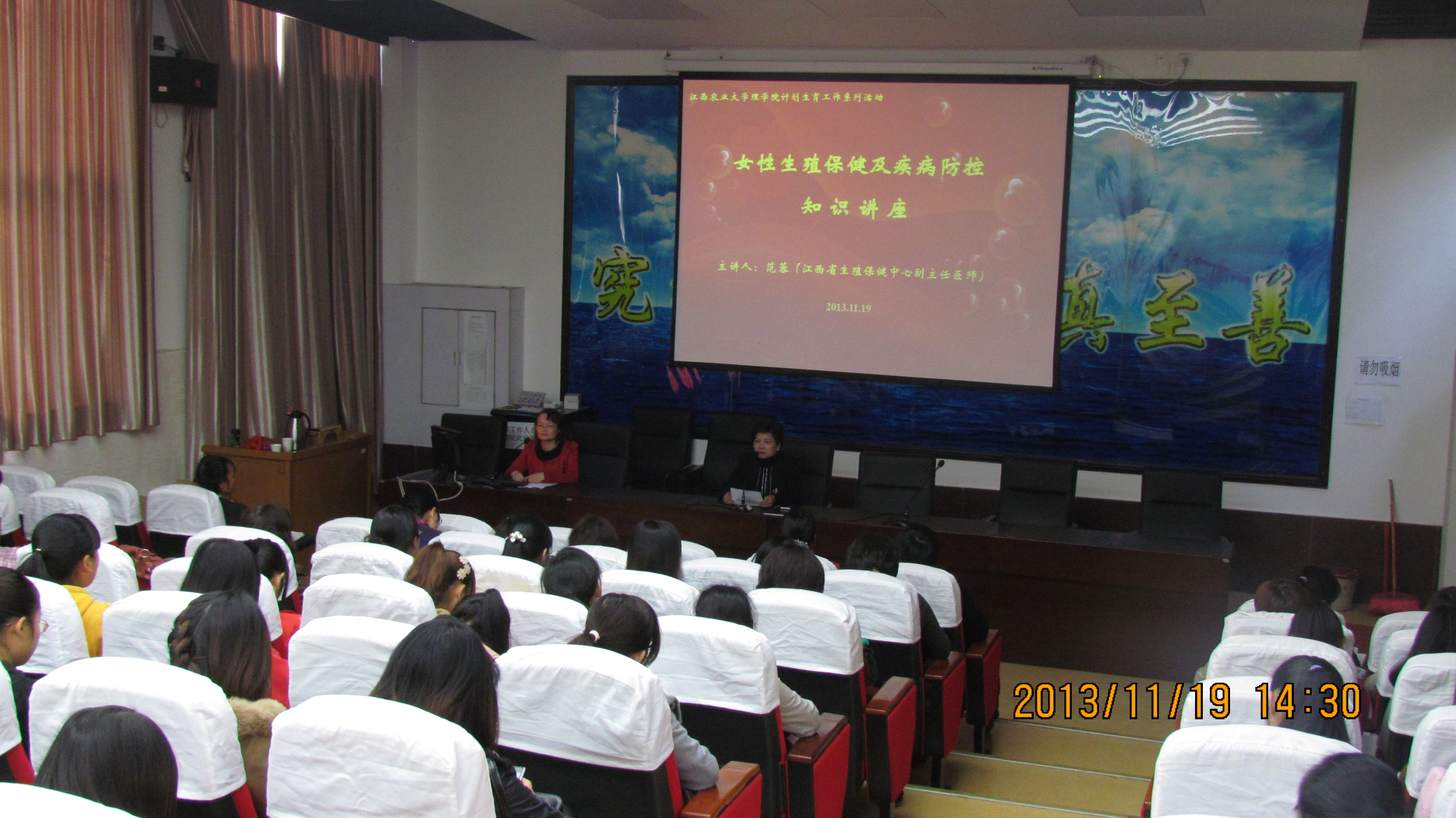 11月19日下午,特邀请了江西省生殖保健中心业务负责人、南昌市计划生育宣教中心副主任医师范蓉作“女人拿什么来呵护你”的关于女性生理健康及疾病防控的讲座,学院共计100余名女性师生参加,校计生办李主任和叶老师亲临讲座指导公司计生工作。讲座主要是向育龄妇女传递健康理念,普及健康知识,让广大师生员工掌握女性生殖健康保健、乳腺疾病防治、出生缺陷预防等知识。专家用风趣幽默的语言,实例讲解怎么样才能生出健康、聪明的孩子。针对女性的生殖结构及生理特点、常见的生殖疾病、不良的卫生习惯、性病传播途径和预防、优生优育等方面进行了通俗易懂、声像并茂的讲座。讲座内容丰富,切合生活实际,本次知识讲座达到了很好的效果,深受育龄妇女的欢迎。