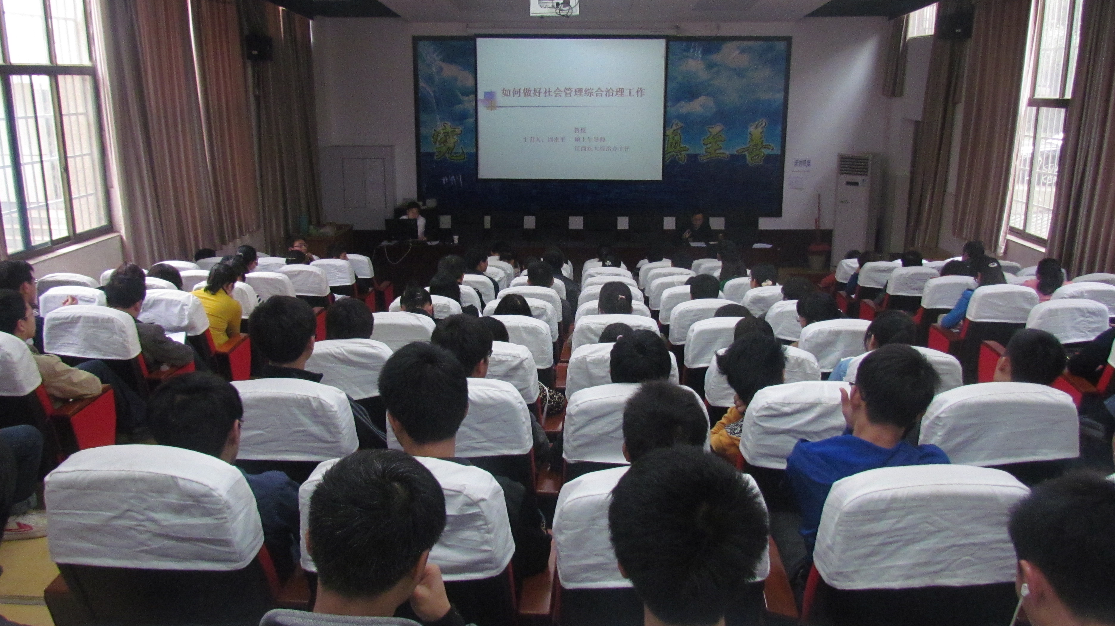 3月18日下午,校综治办主任周水平莅临公司,以《如何做好社会管理综合治理工作》为主题,为公司师生做了一次精彩的综治专题讲座。本次讲座由公司党委书记彭小波主持。