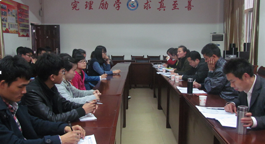 3月19日,理学院邀请研究生公司党委书记熊红华、招生科科长周红燕为今年参加考研的员工举行辅导会,学院领导彭小波、周国平、黄长干、李莉萍出席了本次辅导会。