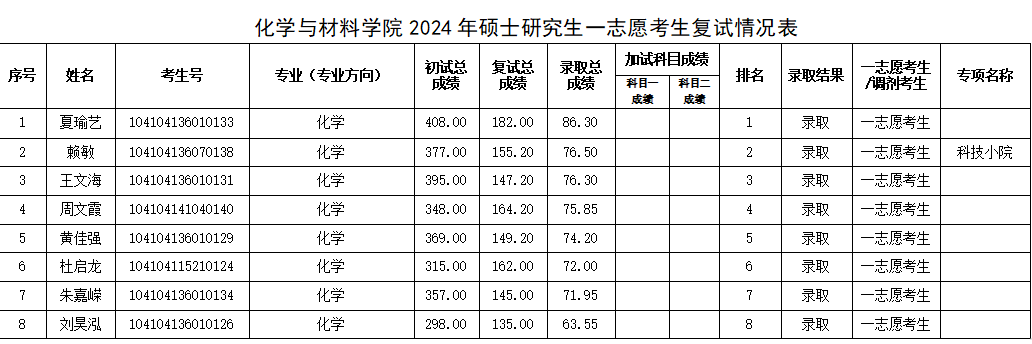 附件:化学与材料公司2024年硕士研究生一志愿考生复试情况表