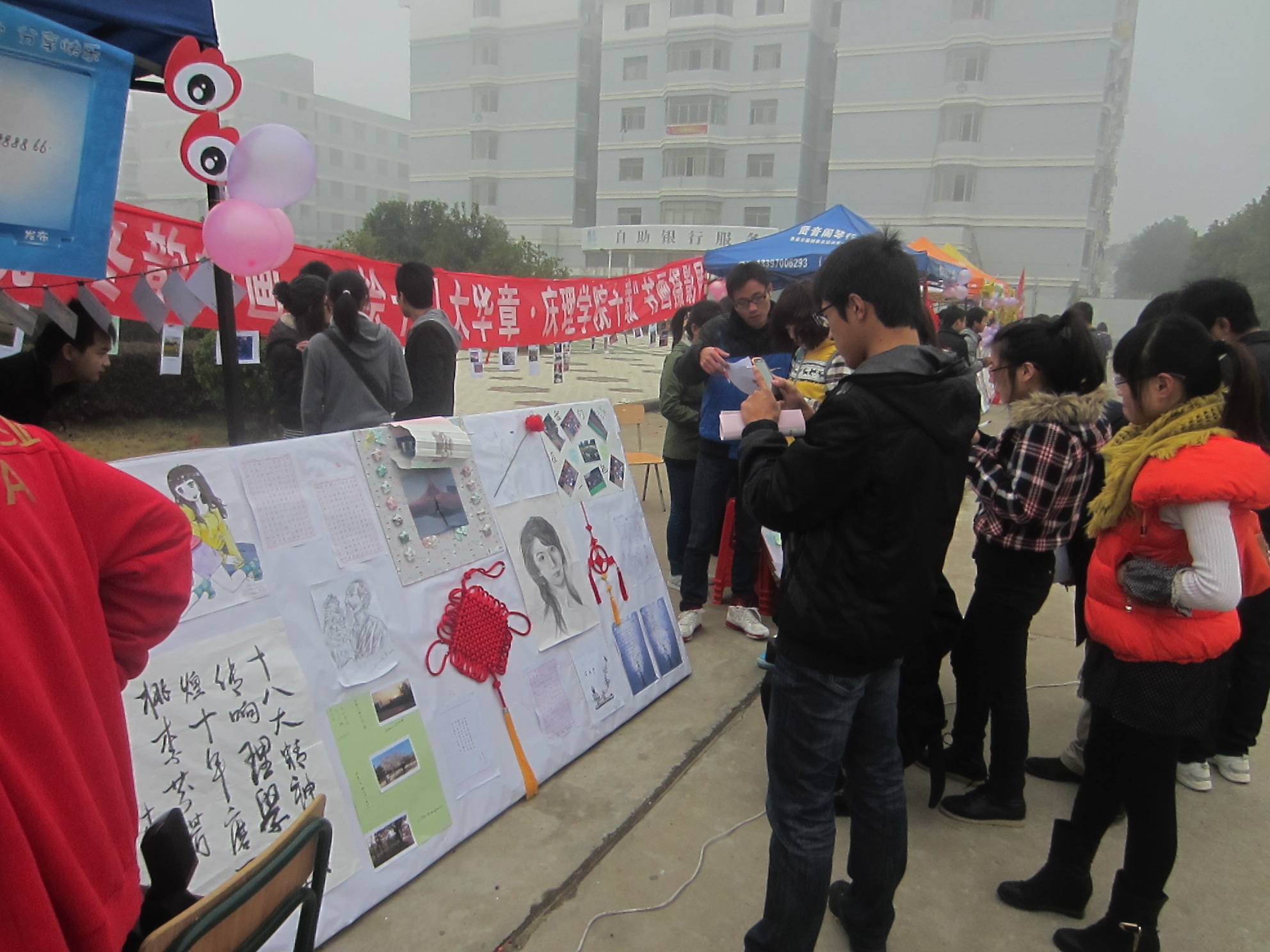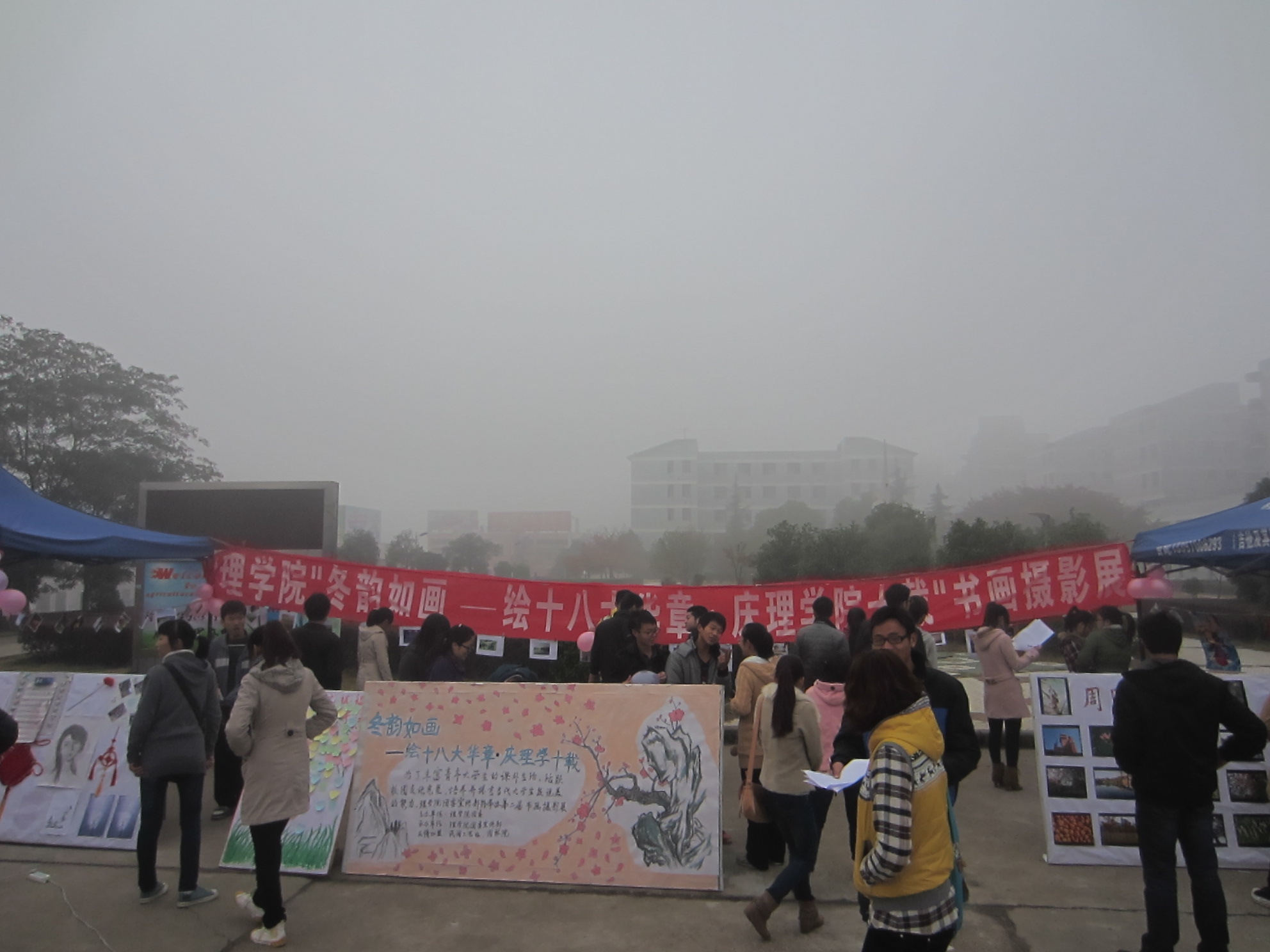 11月18日上午,由理学院团委主办的“冬韵如画——绘十八大华章·庆理学院十载”书画摄影展在农大生活区南区门口顺利开展。