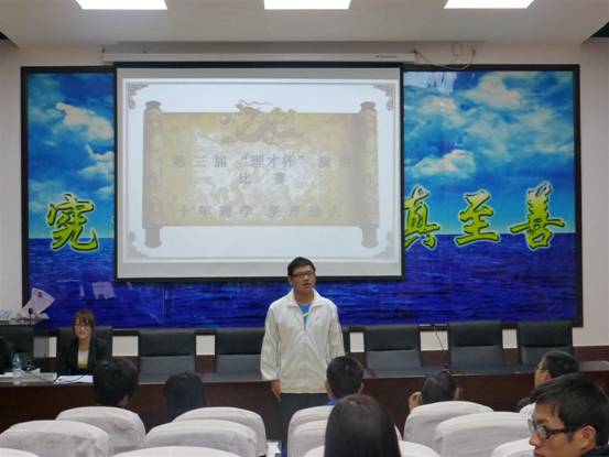 本次演讲赛邀请了理公司党委副书记周国平,团委员工副书记苏瑜,理学院最佳辩手单驰及兄弟院系团委副书记作为此次大赛的评委。各位参赛选手围绕“十年理学,至理励人”这一主题,展开了激烈角逐,晋级选手进行即兴演讲。最终,周汉君荣获此次演讲比赛的冠军,信计1201班荣获班级优胜奖。(团委 严群)