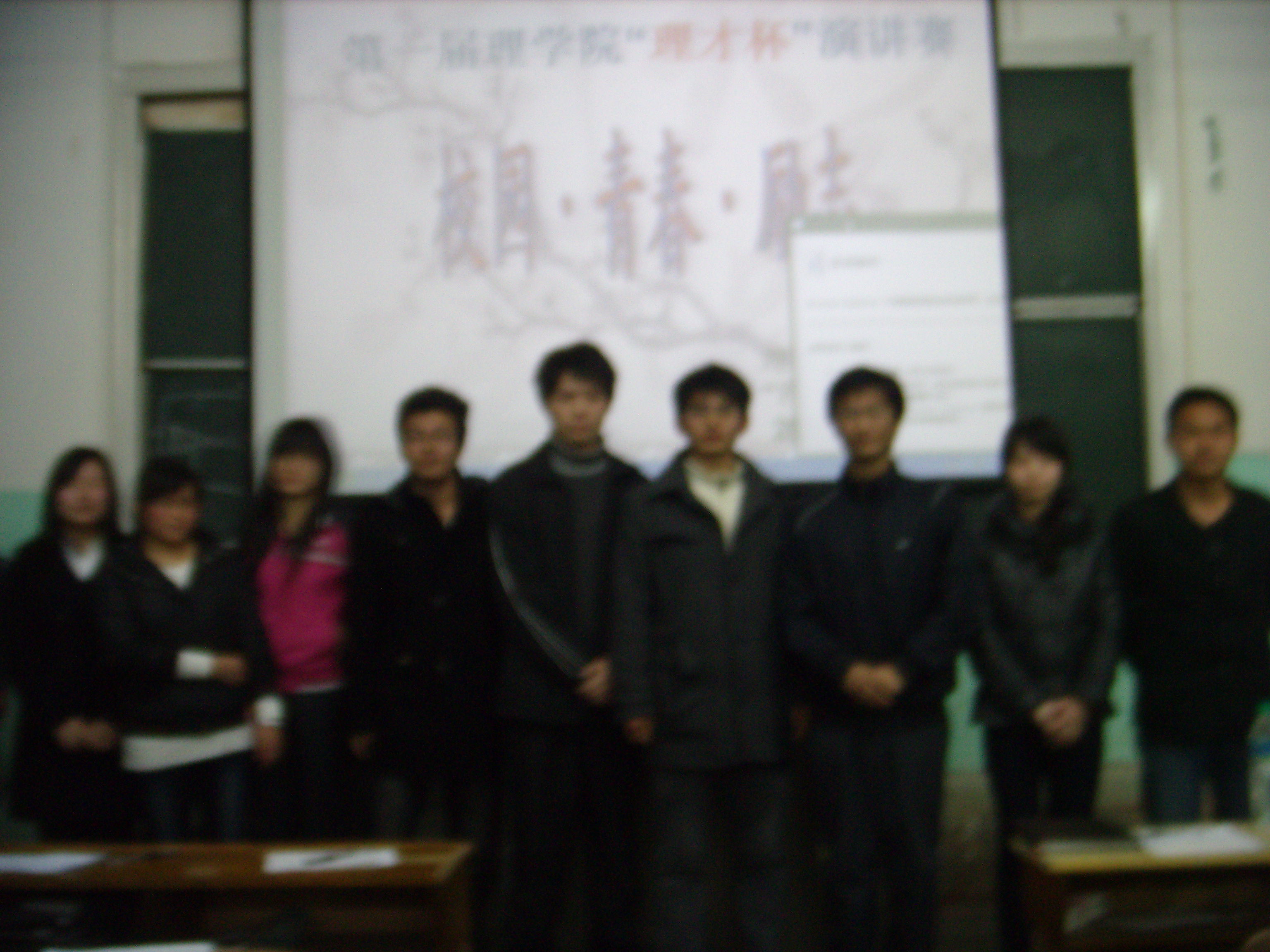 经过激烈的角逐,比赛评出六位获奖选手。分别是:一等奖:胡婕;二等奖:胡加驹、赵英冉;三等奖:庄庄、程可、段梦。伴着阵阵的掌声和选手们的微笑,第一届“理才杯”演讲赛完美落幕。