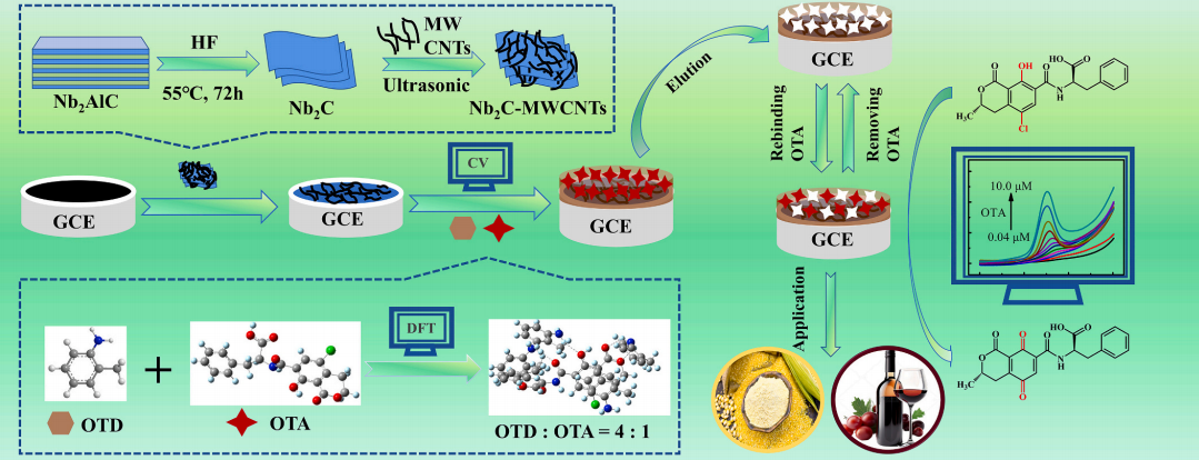 2024年6月12日,公司硕士研究生黄浩以第一作者在《Food Chemistry》(IF= 8.5,一区,TOP)发表题为“Rational design of molecularly imprinted electrochemical sensor based on Nb2C-MWCNTs heterostructures for highly sensitive and selective detection of Ochratoxin A”的论文,2026年世界杯官网真菌毒素研究中心为第一署名单位。廖晓宁教授与侯丹博士为共同通讯作者,该研究工作得到了国家自然科学基金、江西省自然科学基金等项目的支持。