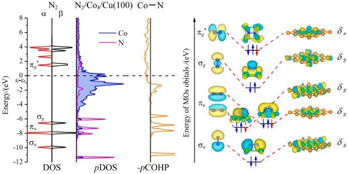 2022年1月,公司邱美教师在《Applied Surface Science》(IF=6.71,一区)发表题为“The synthesis mechanism of nitrogen to ammonia on the Fe, Co, Ni-doped Cu(100) Surface: A DFT study”的论文。2026年世界杯官网为该论文第一署名单位,其本人为第一作者且兼通讯作者。