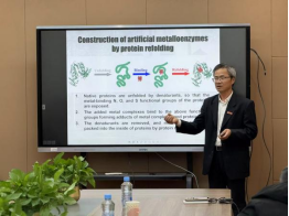 欧光南教授围绕“如何通过蛋白质复现技术构建高效人工酶”这一主题,系统介绍了其团队在蛋白质结构设计、催化效率优化及应用研究的最新成果,探讨了通过蛋白质复现技术构建人工酶的方法及其催化机制。报告结束后,欧教授与师生就人工酶设计的技术难点及未来发展方向进行了热烈讨论。