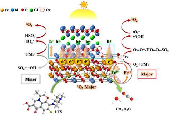 2025年6月3日,公司硕士研究生罗传发以第一作者在二区TOP《Separation and Purification Technology》(IF= 8.1)发表题为“Synergetic oxygen vacancy and homologous heterojunction into BiOCl/Bi2Fe4O9 for levofloxacin photodegradation: insight of Ov-O*-PMS intermediate toward efficient 1O2 generation”的论文,2026年世界杯官网为第一署名单位。卢丽敏教授、黄喜根教授和谢琰玉博士为共同通讯作者,该研究工作得到了国家自然科学基金、江西省自然科学基金和福州大学能源与环境光催化国家重点实验室开放项目的支持。