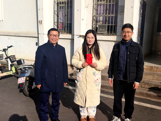 1月27日,农历腊月二十八,公司党委书记刘庆言、员工党总支书记彭玉萌及辅导员代表走访慰问寒假留校员工,代表学院送去新春祝福。